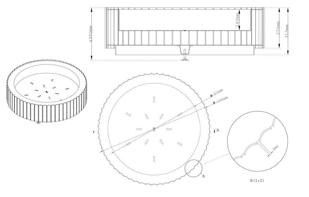 De ronde vorm met openingen tussen de lamellen brengt extra zuurstof tot bij het vuur wat voor lekker veel vlam en lekker weinig rook zorgt. De kleine verstelbare pootjes, grotendeels weggewerkt onder de schaal, laten The Ring en z’n gezellige omvang zachtjes zweven.