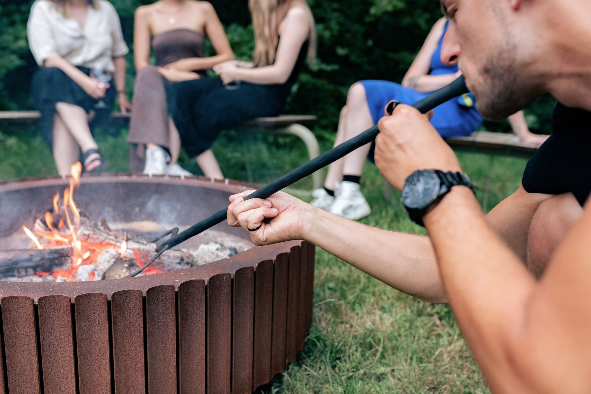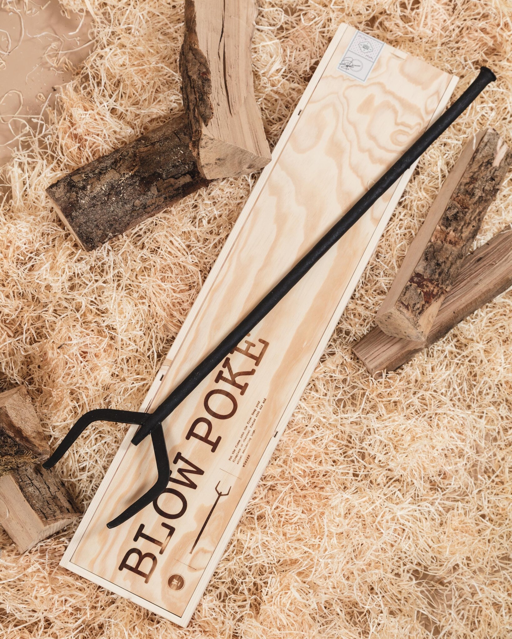 Optioneel bij de vuurschaal bij te bestellen de Wünder The Blow Poke, 80 x 15 cm (lxb). Voor The Blow Poke wordt gebruikgemaakt van gehard staal, ambachtelijk met de hand gesmeed. Ligt goed in de hand dankzij zijn ergonomische vorm. The Blow Poke wakker je elk vuur aan. Kort genoeg om hout of kolen vast te grijpen, lang genoeg om op veilige afstand te blijven. Elk stuk wordt uniek genummerd, inclusief echtheidscertificaat. Kan in een kistje verkregen worden, ideaal als geschenk!